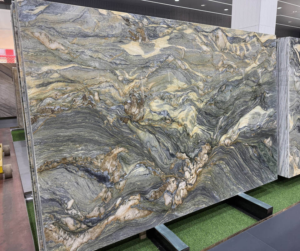 แผ่นหินควอตไซต์ Ocean Fantasy และควอตไซต์ Fusion Blue สำหรับห้องครัว