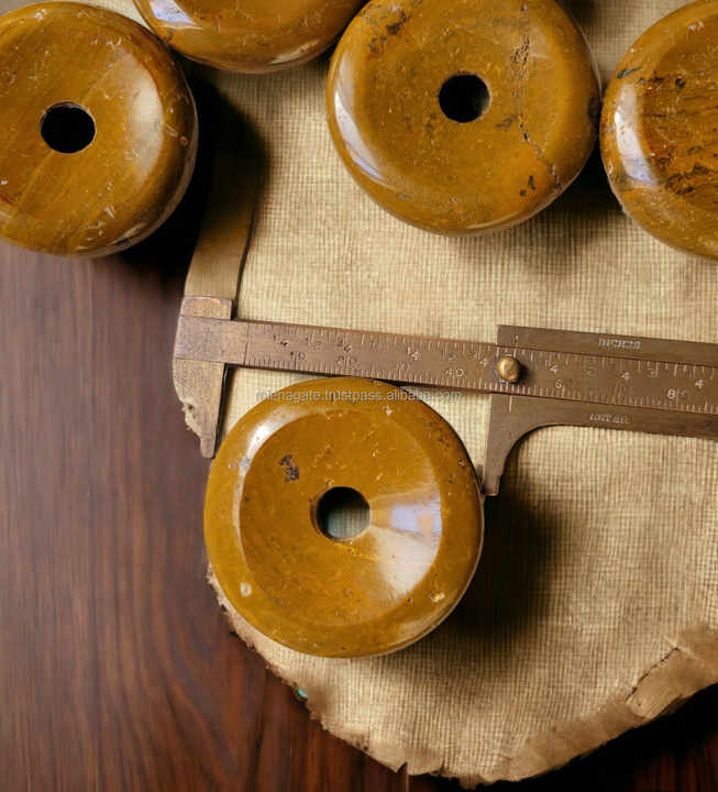 จี้หินแจสเปอร์สีเหลืองมัสตาร์ดคุณภาพพรีเมียม ขนาด 50 มม. รูปทรงโดนัท พร้อมงานแกะสลักลายเงา