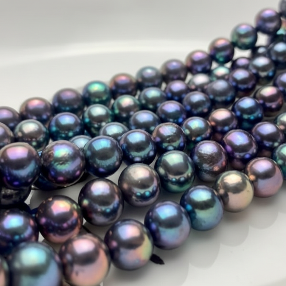 ลูกปัดไข่มุกสีรุ้งทรงกลมลูกปัดไข่มุกน้ำจืดสีรุ้ง