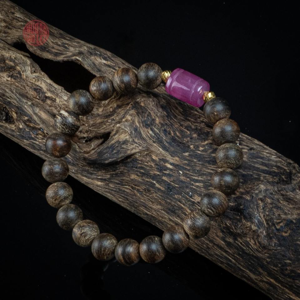 กำไลไม้กฤษณาหายากแบบจมน้ำ ขนาด 8 มม. ประดับด้วยพลอยทับทิมผสม เครื่องประดับหรูหราสำหรับผู้รักจิตวิญญาณ ราคาขายส่ง