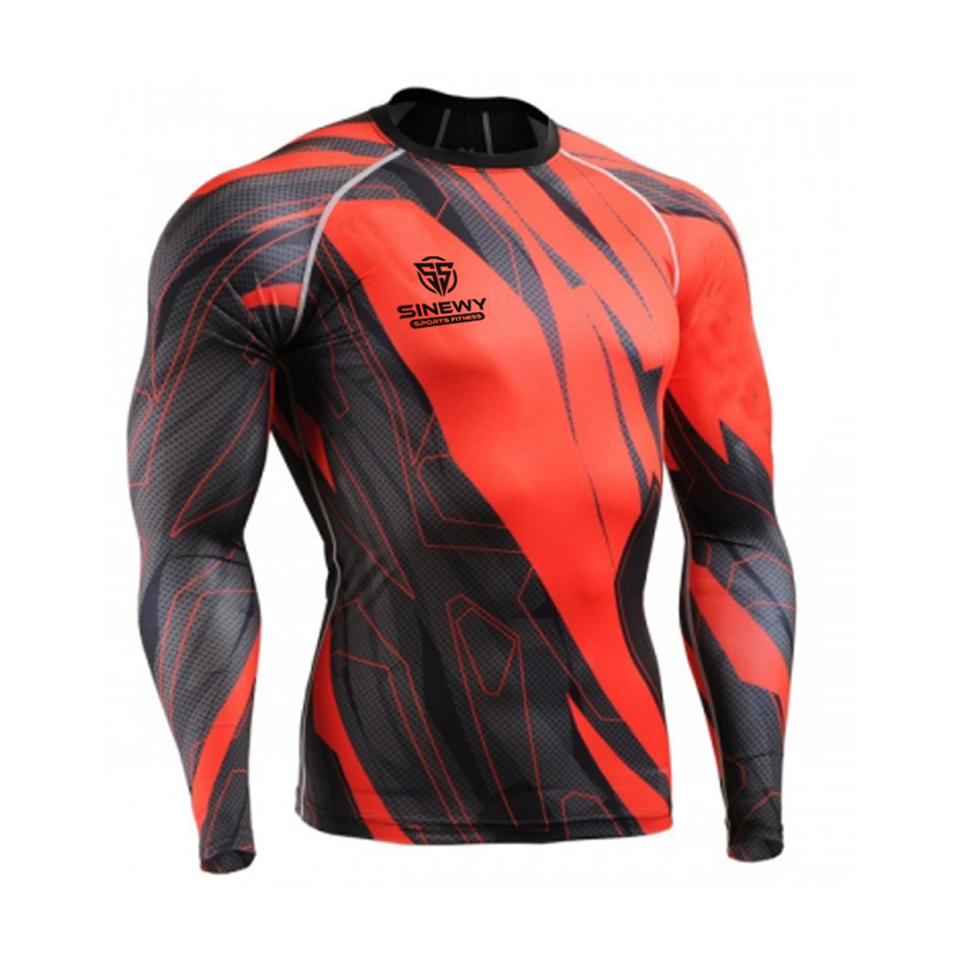 เสื้อแรชการ์ดแขนยาวของผู้ชายสีทึบชุดฟิตเนส