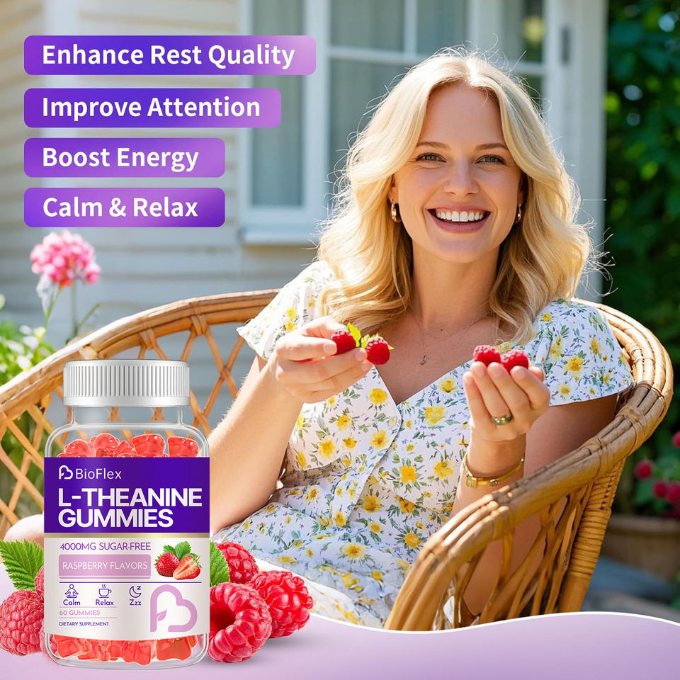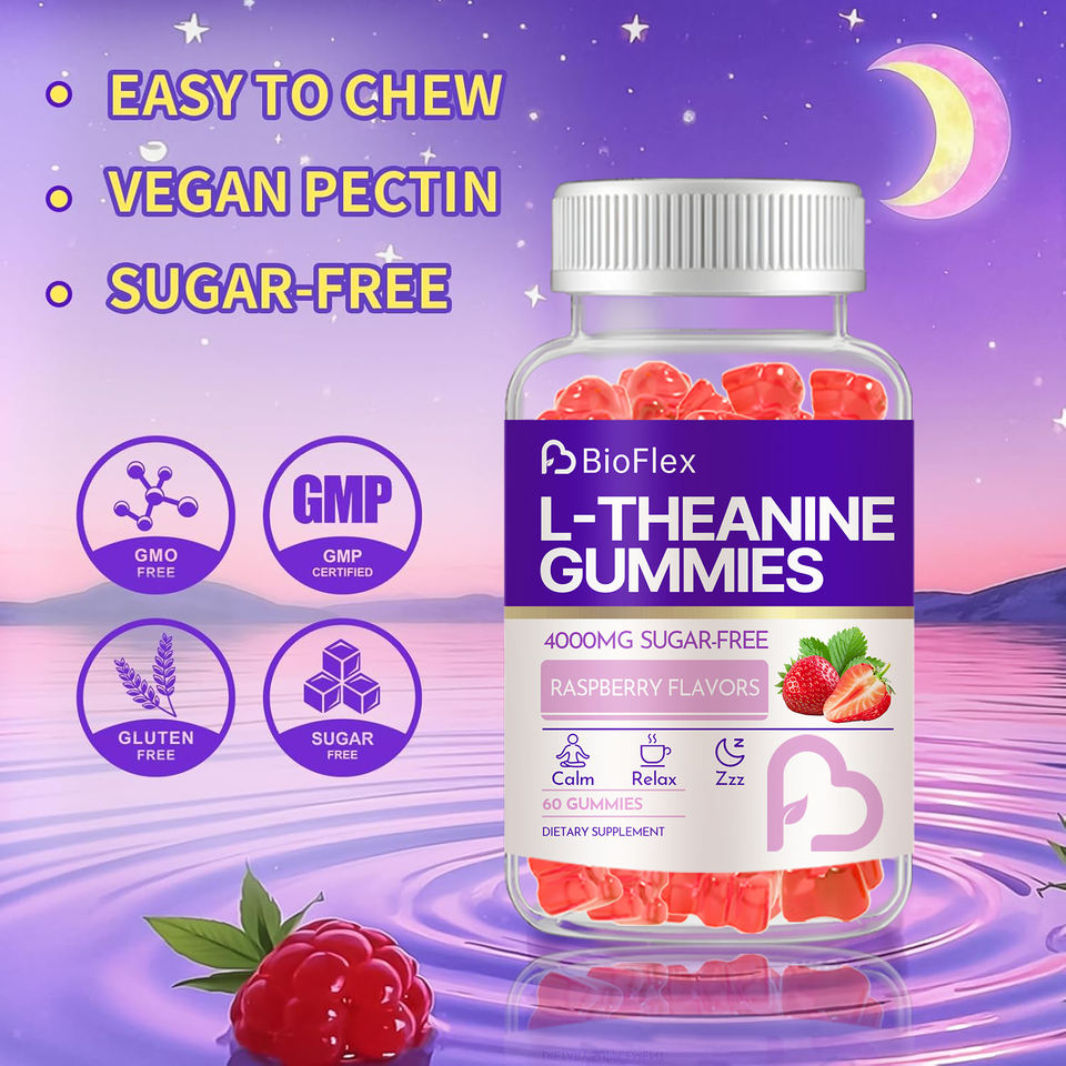 อาหารเสริมแอล-ธีอะนีน รสราสเบอร์รี่ 400 มก. แบบเคี้ยวได้ ช่วยให้สงบ หลับสบาย และผ่อนคลาย แอล-ธีอะนีน กัมมี่ สำหรับเด็กและผู้ใหญ่