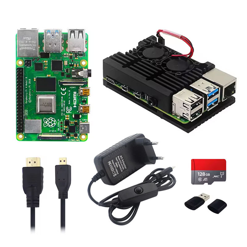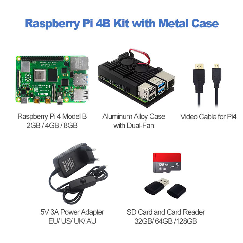 Raspberry Pi 4รุ่น B Kits เคสอลูมิเนียมพัดลมคู่พร้อมการ์ด SD 32 GB อะแดปเตอร์ไฟฟ้าฮีทซิงค์สำหรับบอร์ดการศึกษาและผู้ผลิต