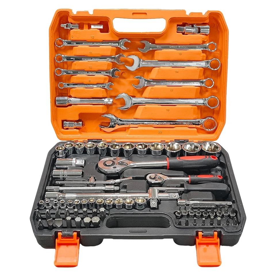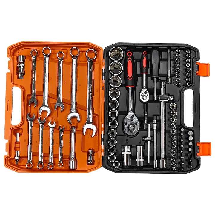 ชุดประแจบล็อกพร้อมด้ามขันแบบมีเฟือง ชุดเครื่องมือช่าง ชุดประแจบล็อกขนาดเล็ก ชุดเครื่องมือซ่อมรถยนต์ 82 ชิ้น