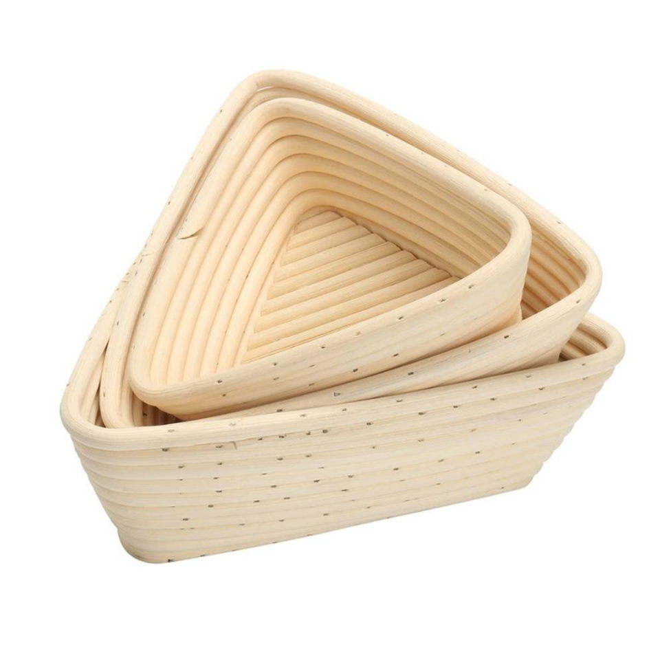 ตะกร้าหวายสำหรับพักแป้งขนมปังรูปสามเหลี่ยม ตะกร้าหวายสำหรับพักแป้งขนมปังพร้อมแผ่นรอง จากเวียดนาม