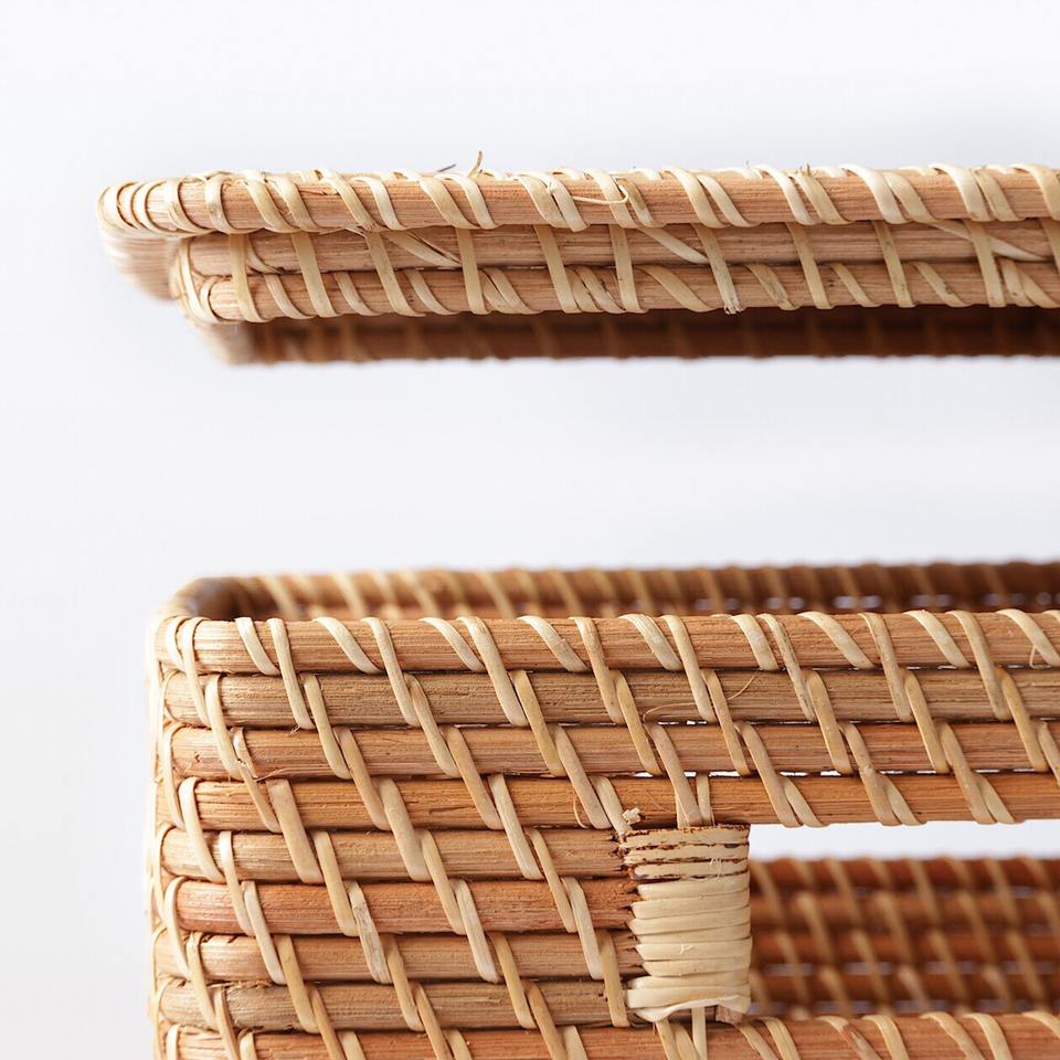 ตะกร้าหวายทรงสี่เหลี่ยมฝาปิดแฮนด์เมดกล่องใส่ของแต่งบ้านและบ้านธรรมชาติเป็นมิตรกับสิ่งแวดล้อมขายส่งจากเวียดนาม