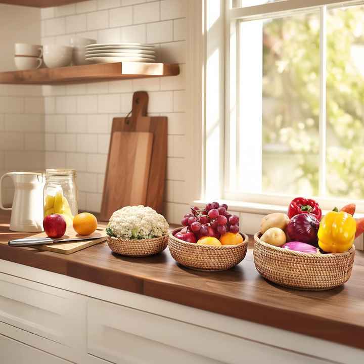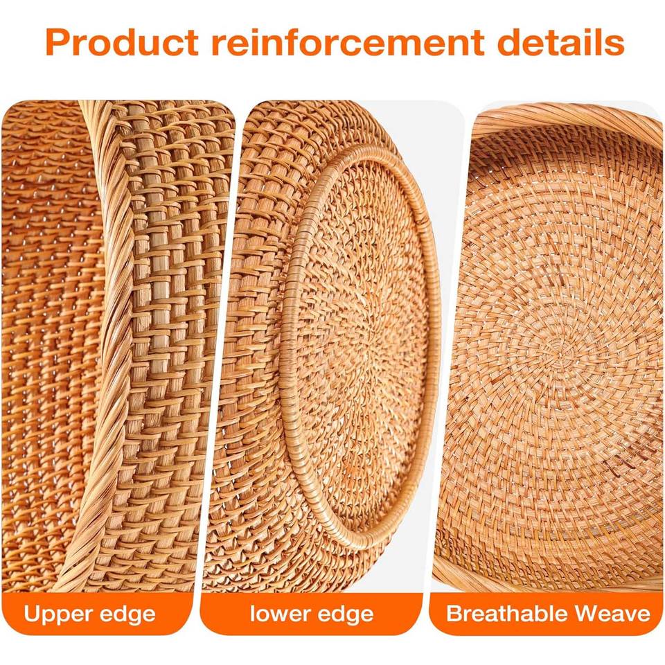 ชุดตะกร้าขนมปังหวาย ตะกร้าทรงกลมทอมือธรรมชาติ หลายขนาด สำหรับเสิร์ฟอาหาร เก็บขนมปัง ขนมอบ ผลไม้ ใช้ในครัวและห้องรับประทานอาหาร