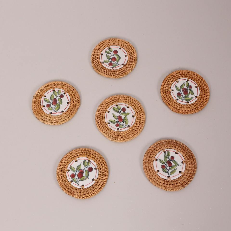 ชุดถาดรองแก้วหวายเซรามิกพร้อมโลโก้หรือลวดลายตามสั่งพิมพ์จากโรงงาน