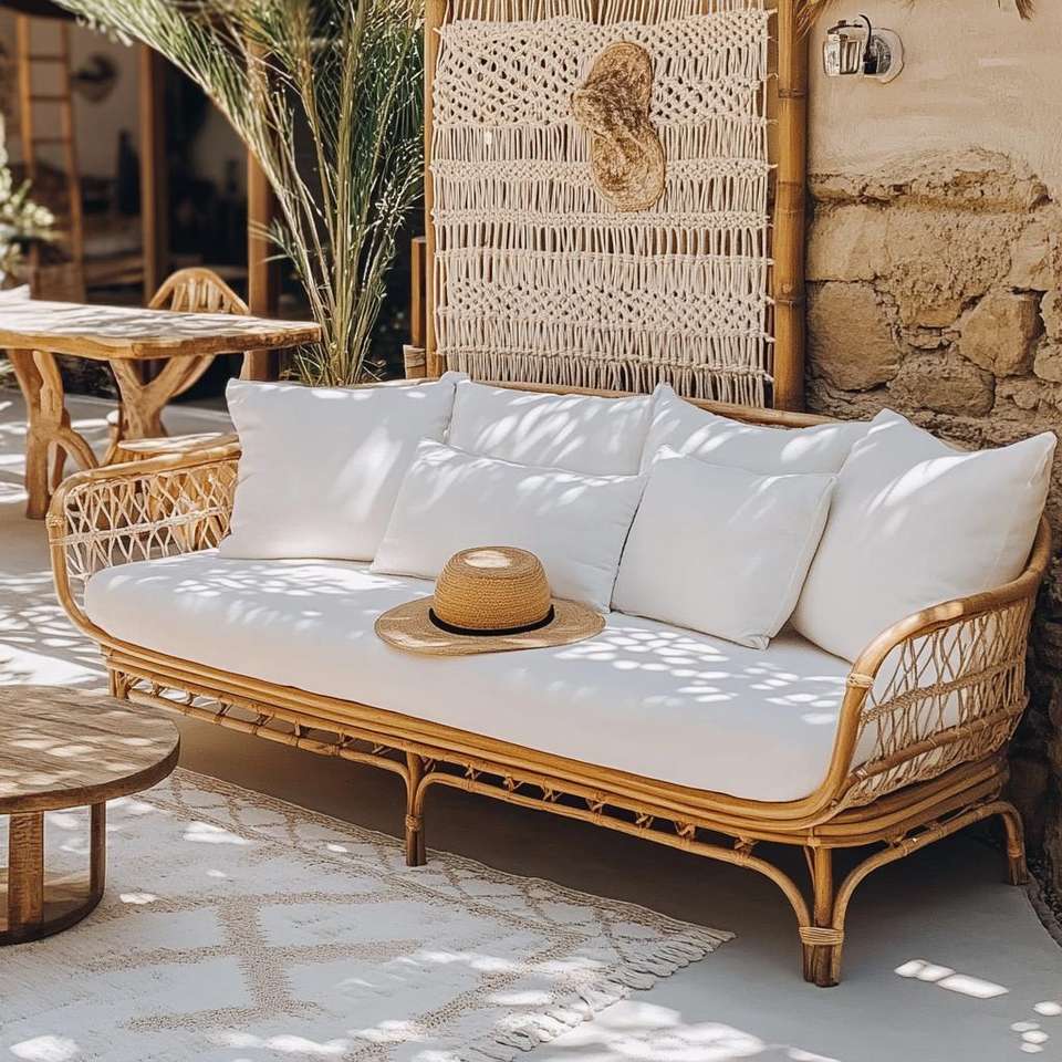 ชุดโซฟาหวายบุฟองน้ำสำหรับห้องนั่งเล่นอพาร์ทเม้นระเบียงสวนตกแต่งด้วยวัสดุอ่อนนุ่มสไตล์ยุโรปที่ทันสมัย