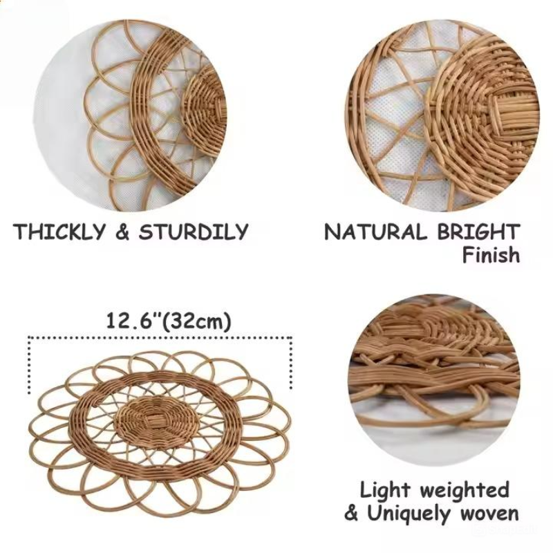 แผ่นรองจานหวายแผ่นรองจานถักลายดอกไม้แผ่นรองจานตกแต่งผนังแผ่นรองจานสำหรับโต๊ะอาหารสำหรับห้องครัว