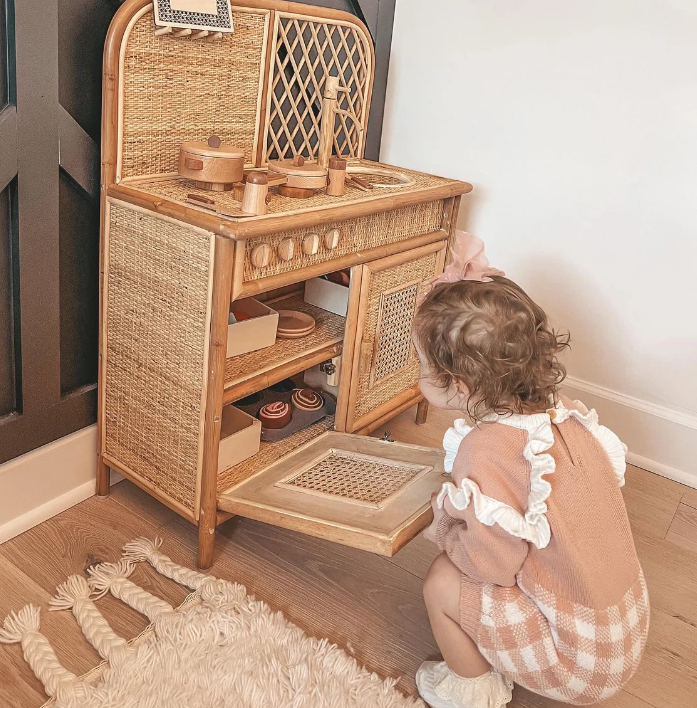 ชุดครัวเด็กทำจากหวายสไตล์โบโฮ ของเล่นครัวหวายสำหรับเด็ก ขายส่งจากเวียดนาม