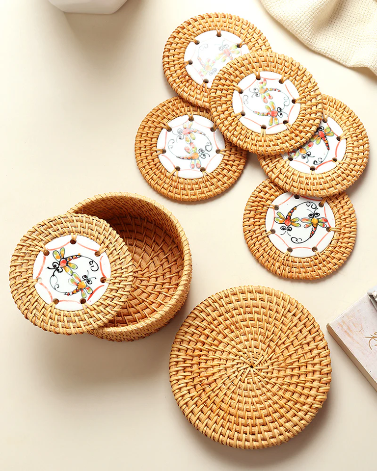 ชื่อผลิตภัณฑ์:ชุดที่รองแก้วหวาย6ชิ้นพร้อมกล่องเก็บของ