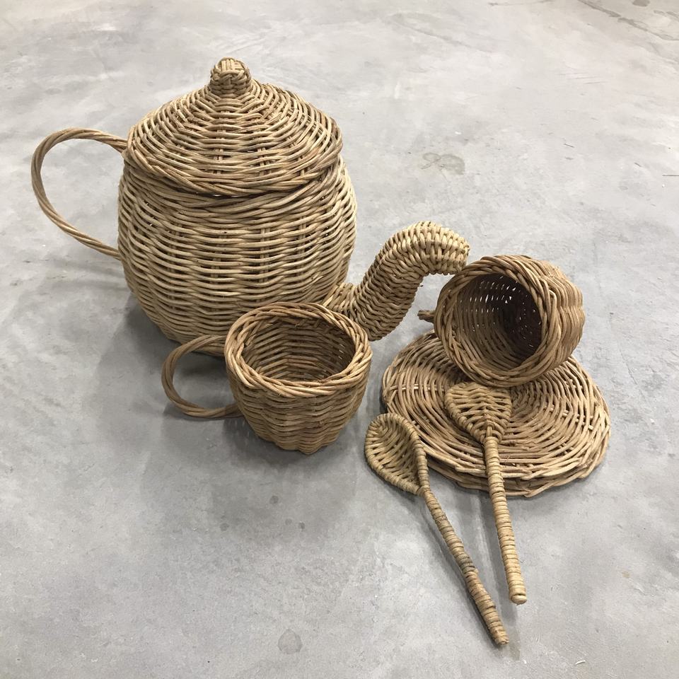 หวายตุ๊กตาเฟอร์นิเจอร์ชุดหม้อชาสำหรับของเล่นเด็กของเล่นเด็กเล่น Happy