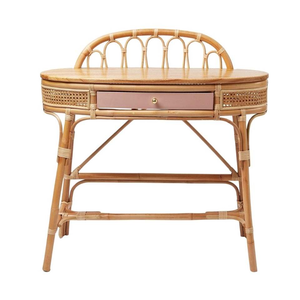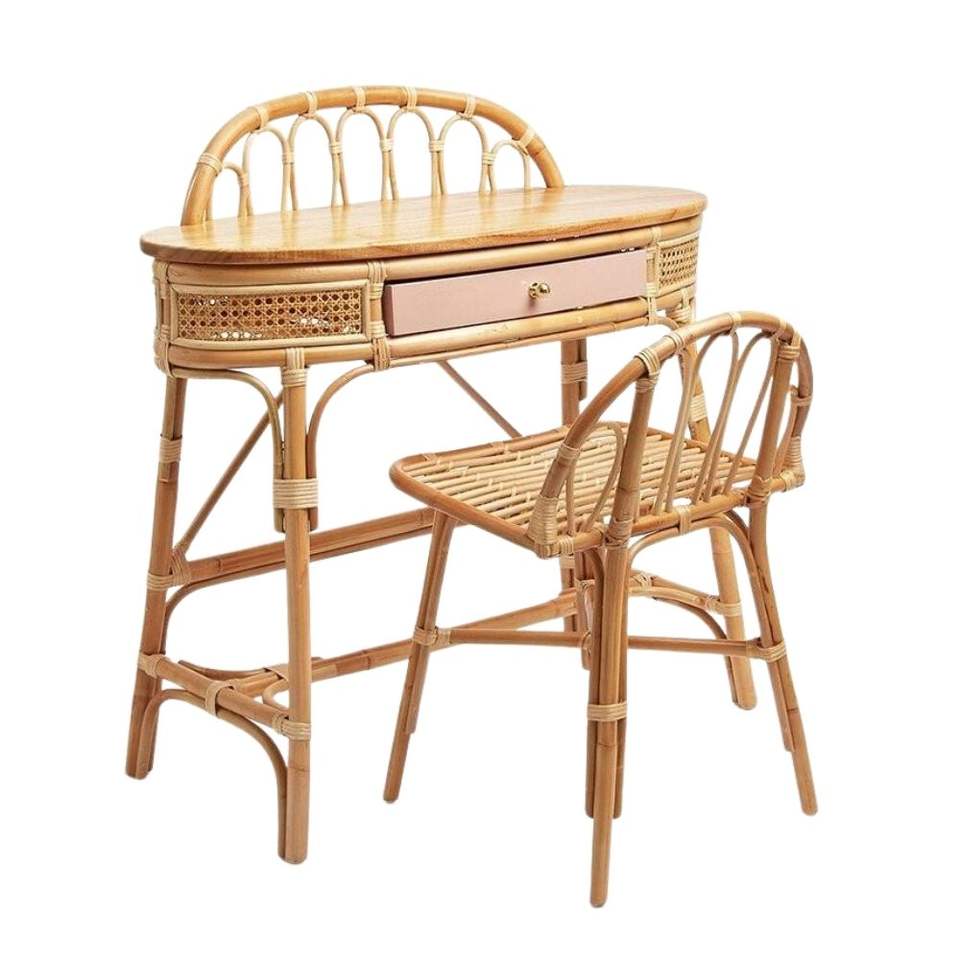 โต๊ะเครื่องแป้งหวายพร้อมเก้าอี้แต่งหน้า ขายส่งราคาถูกจากโรงงานเวียดนามโดยตรง ปรับแต่งได้