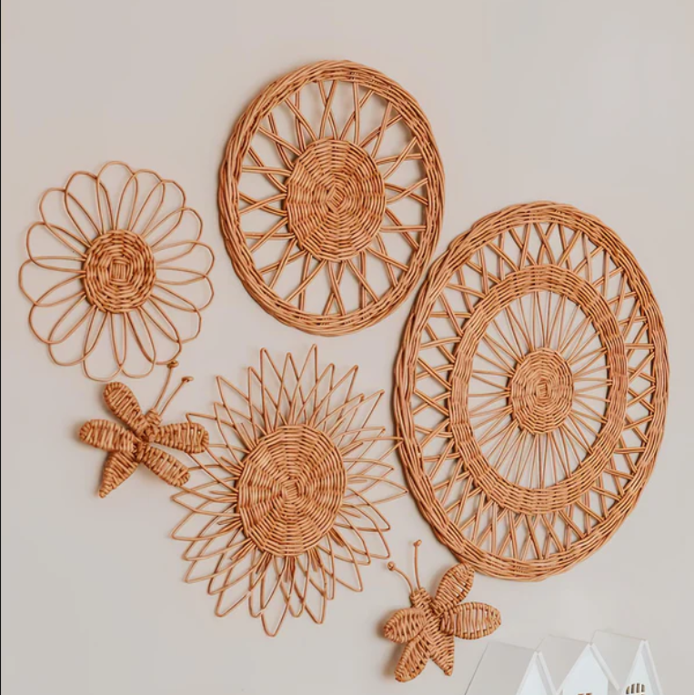 ชุดรูปลอกหวายติดผนังทำจากหวายธรรมชาติงานแฮนด์เมดศิลปะบนผนังสำหรับสถานรับเลี้ยงเด็กห้องเด็กตกแต่งลายมหาสมุทรการตกแต่งที่เป็นมิตรต่อสิ่งแวดล้อมสไตล์โบโฮ