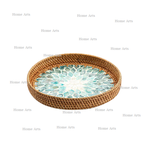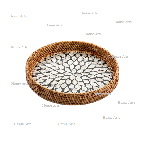 ถาดเสิร์ฟอาหารหวายพร้อมงานฝังมุกคุณภาพสูงสุด รูปทรงกลม สำหรับชาและกาแฟ ในราคาที่เข้าถึงได้