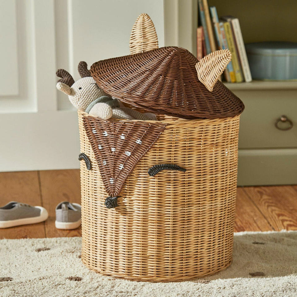 ตะกร้าหวายหวายสำหรับเด็กตะกร้าหวายดีไซน์รูปสุนัขจิ้งจอกเก็บของสำหรับเด็กใช้ตกแต่ง