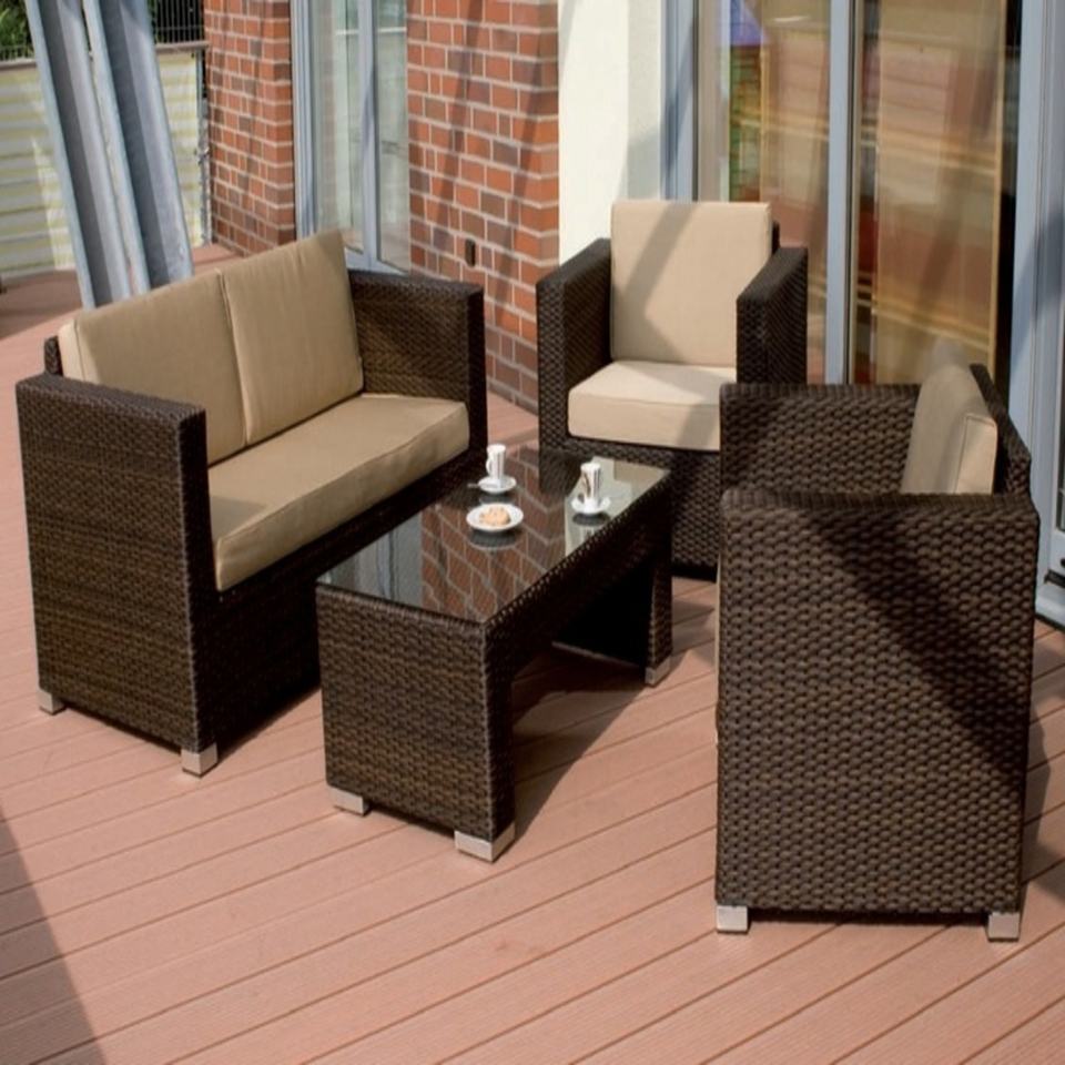 ชุดโซฟาหวายในสวนพร้อมโต๊ะกาแฟเบาะรองนั่งแบบซักได้สำหรับใช้งานกลางแจ้งและโรงแรมสำหรับห้องนั่งเล่น