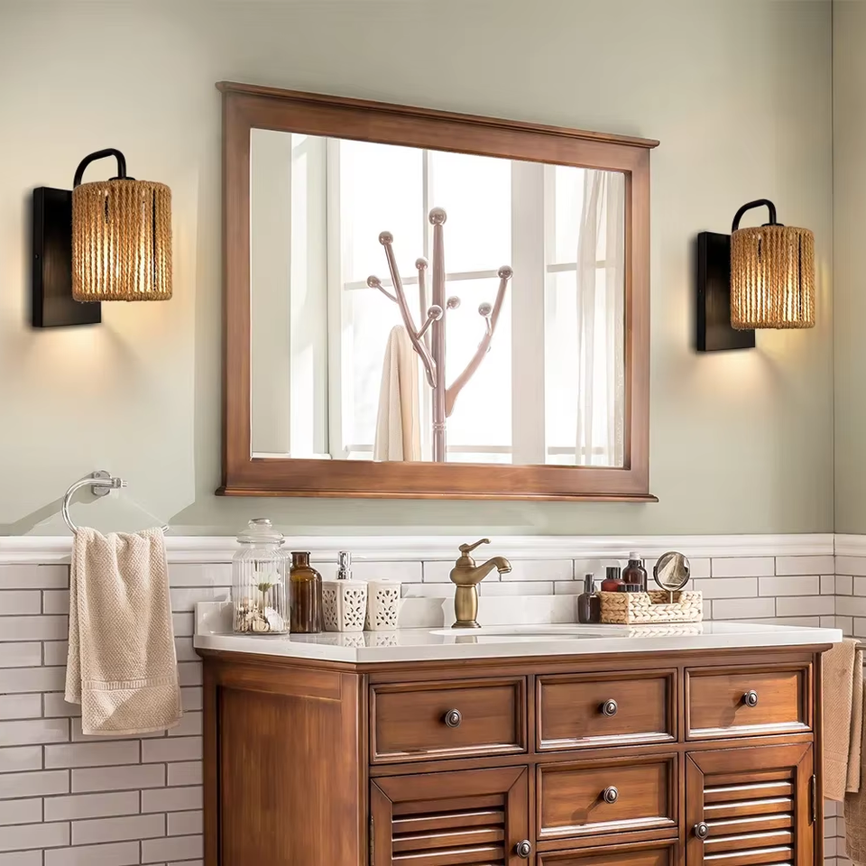 ชื่อผลิตภัณฑ์:โคมไฟติดผนังหวายในร่มพร้อมเชือกป่านแบบชนบท