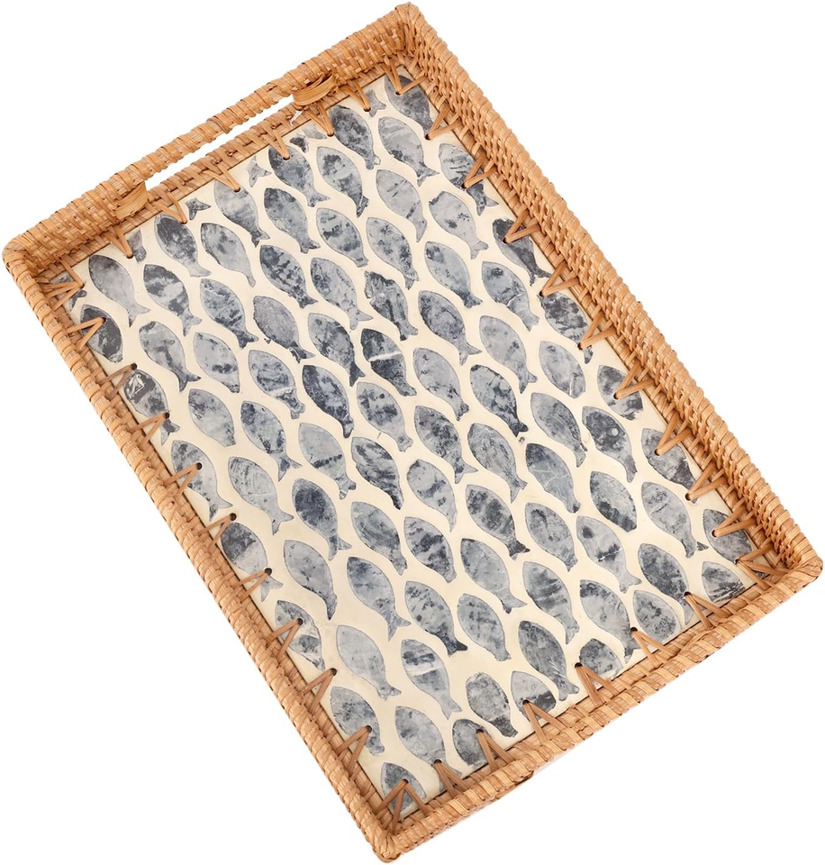 ถาดเก็บของหวายและเปลือกหอยมุก ลายปลา ทรงกลม ทรงสี่เหลี่ยม ถาดจัดระเบียบเปลือกหอยมุก