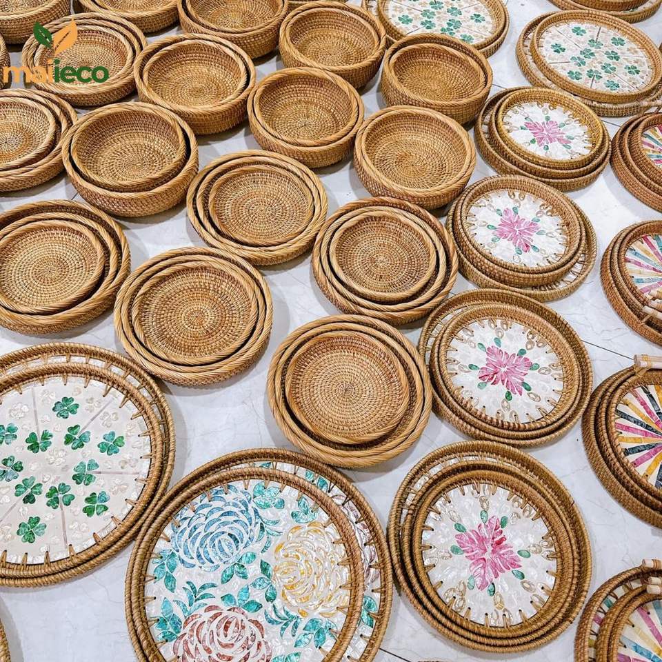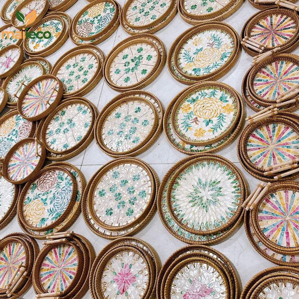 ถาดหวายฝังมุก ถาดหวายทำมือ ทนทาน สำหรับตกแต่งบ้านและงานเลี้ยง ประดับด้วยมุก