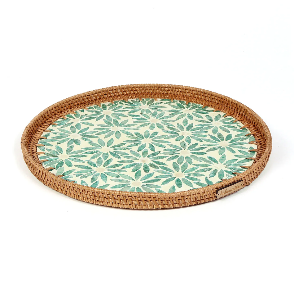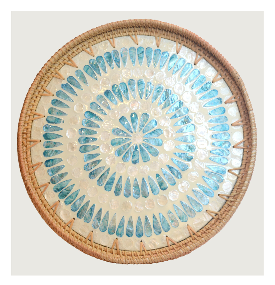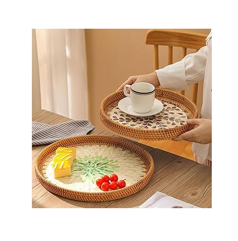 Rattan Mother Of Pearl Serving Tray at Low Price Round Storage Organizer Trays Best Quality MOP Tray