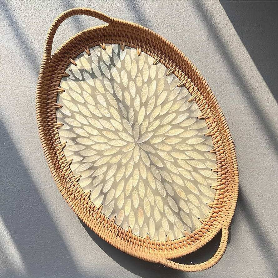 ถาดไม้ม็อบหวาย & แม่แห่งไข่มุกถาดจัดเก็บไม้ถูพื้นและถาดหวาย