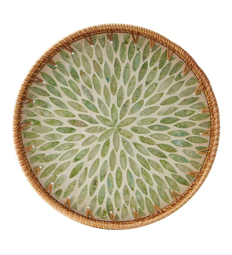 ถาดหวายฝังมุก ดีไซน์หรูหราทันสมัย อเนกประสงค์ สำหรับเก็บของในห้องน้ำ ภาชนะใส่อาหาร สีขาว ถาดมุก