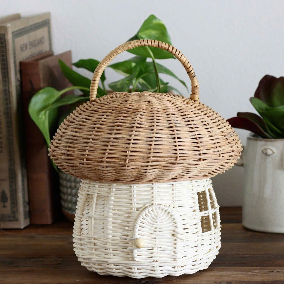 ตะกร้าหวายสานสำหรับเด็กเก็บของเล่นด้วยมือดีไซน์บ้านนางฟ้าน่ารักสำหรับตกแต่งบ้าน