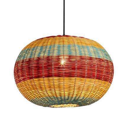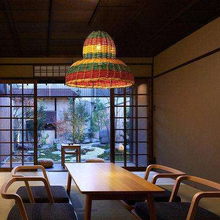 โคมไฟหวายทรงกลม ไฟ LED สำหรับห้องนั่งเล่น ห้องรับประทานอาหาร ห้องทำงาน ห้องน้ำชา สไตล์เซน ขนาด 40 ซม. 35 ซม. โคมไฟระย้าหัวเดียว