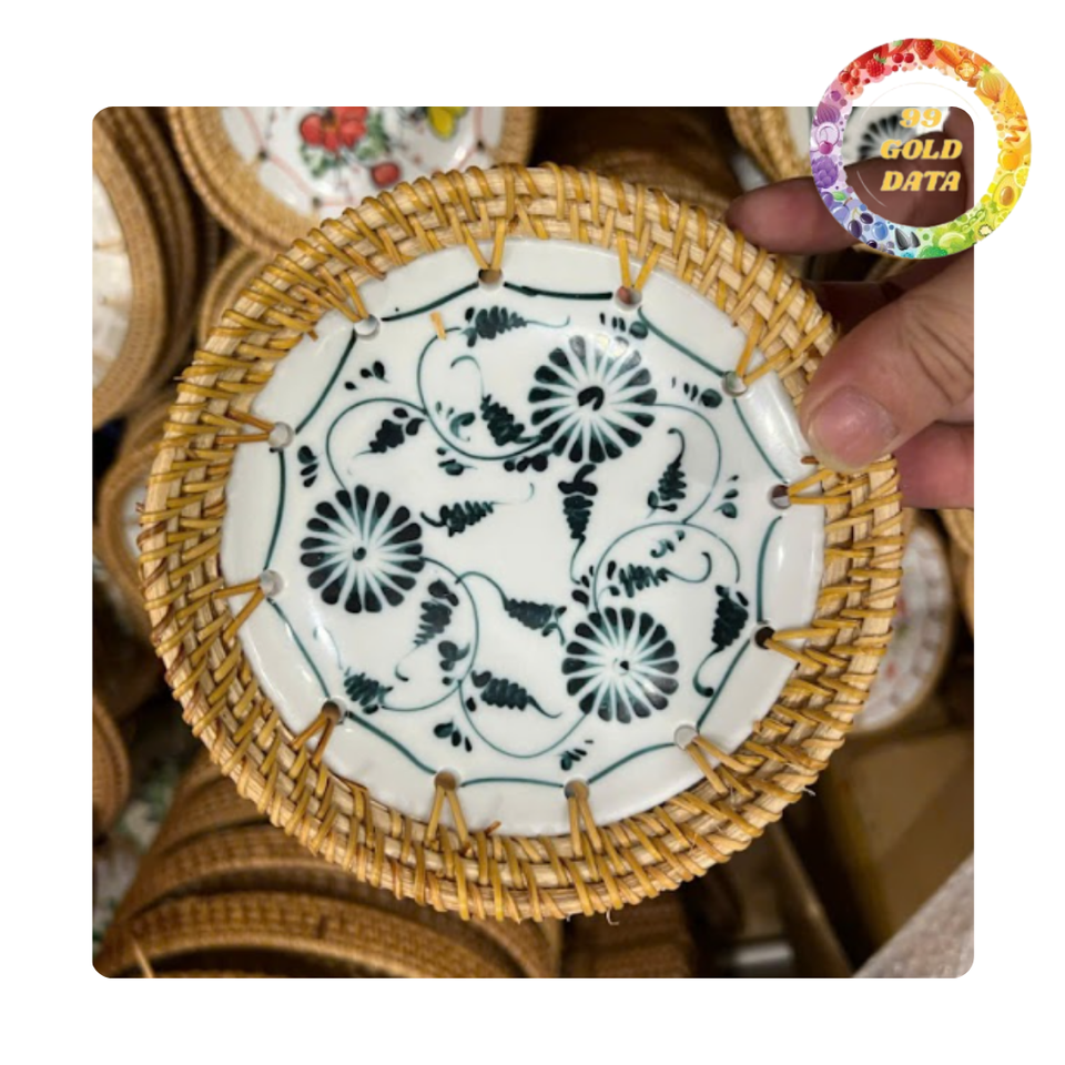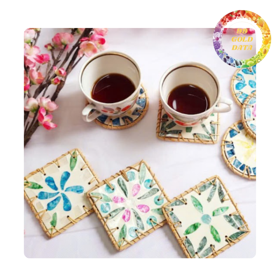 เสื่อรองจานหวายลายแม่มุกในถาด | ทำจากหวายธรรมชาติที่มีรูปร่างและขนาดแตกต่างกัน