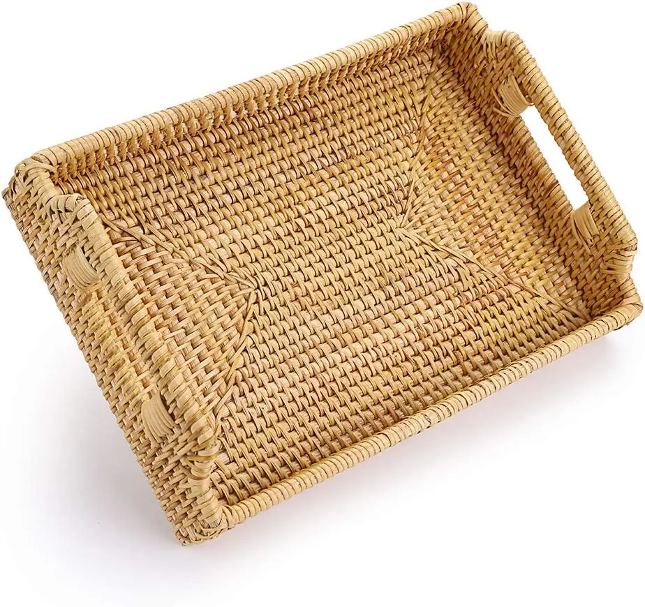ถาดหวายเสิร์ฟพร้อมถาดรองจานหวายตกแต่งโต๊ะแฮนด์เมดสำหรับงานแต่งงาน