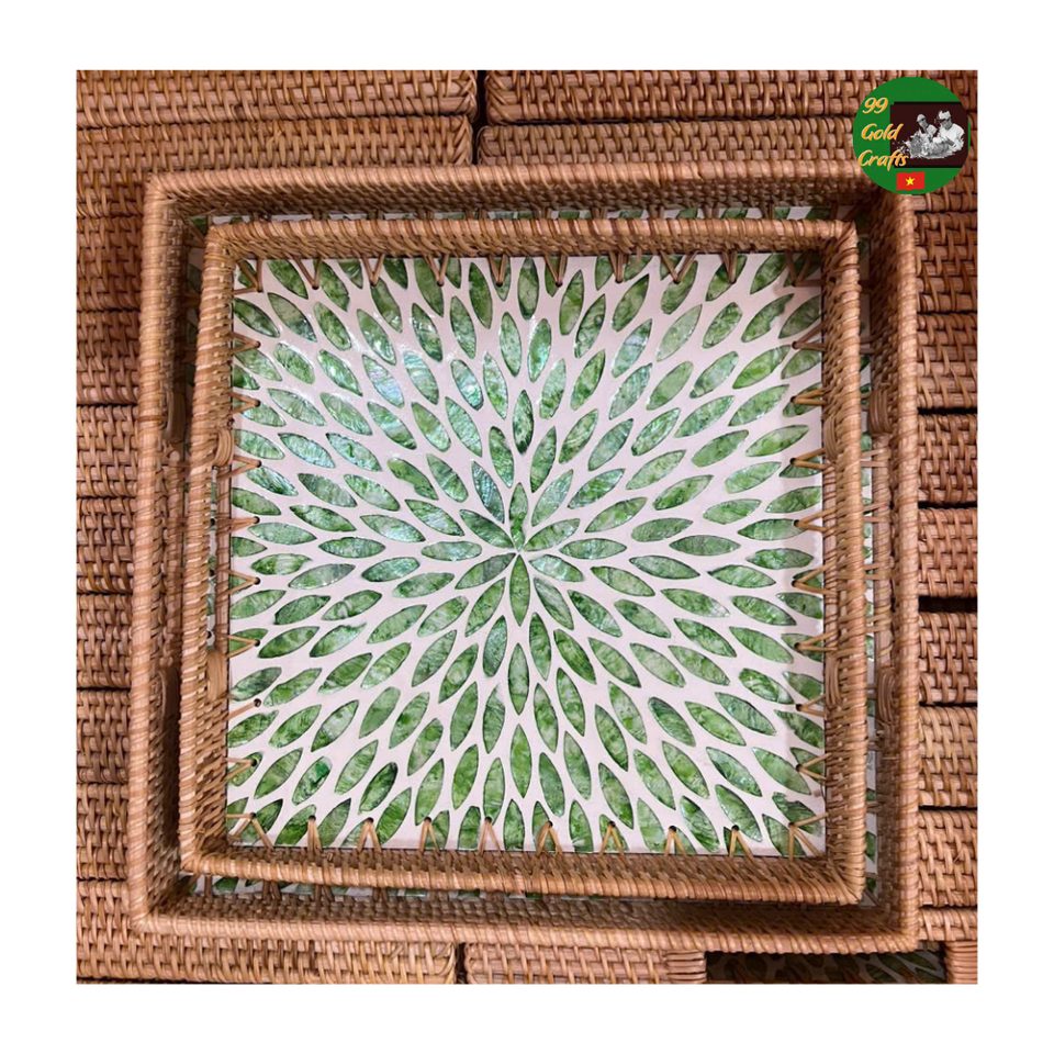 ถาดเสิร์ฟหวายประดับมุก งานฝีมือจากธรรมชาติ ถาดสี่เหลี่ยมหรูหราจากมุก ผลิตโดยโรงงานผลิตถาดมุก