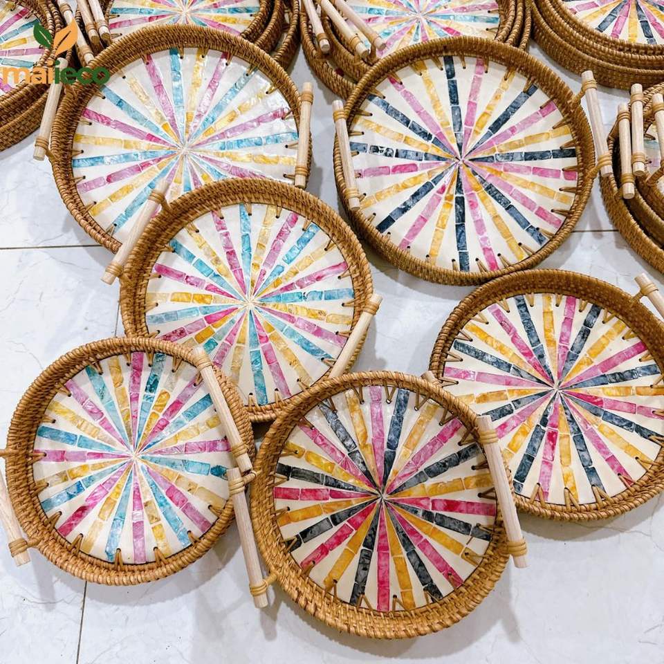 ถาดรองหวายทรงกลมหรูหราพร้อมด้ามแม่มุกเครื่องใช้บนโต๊ะอาหารอเนกประสงค์สำหรับห้องครัวและห้องนั่งเล่นผลิตในเวียดนาม