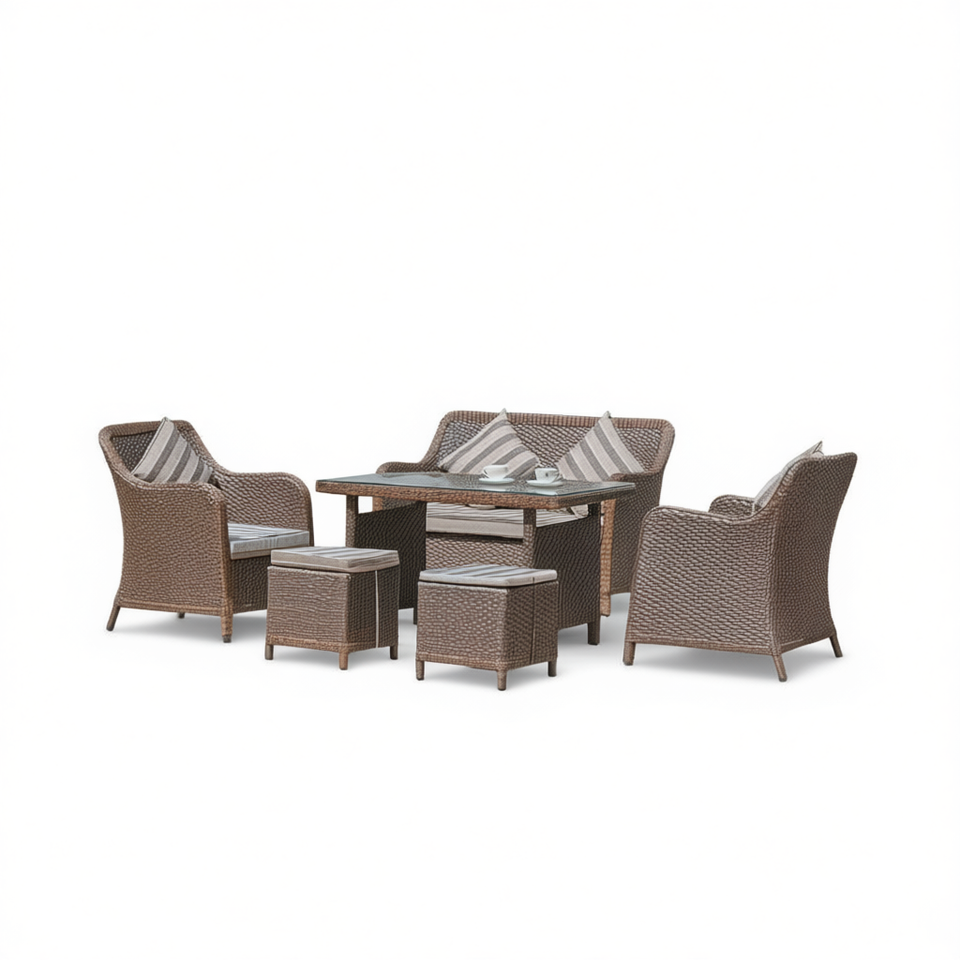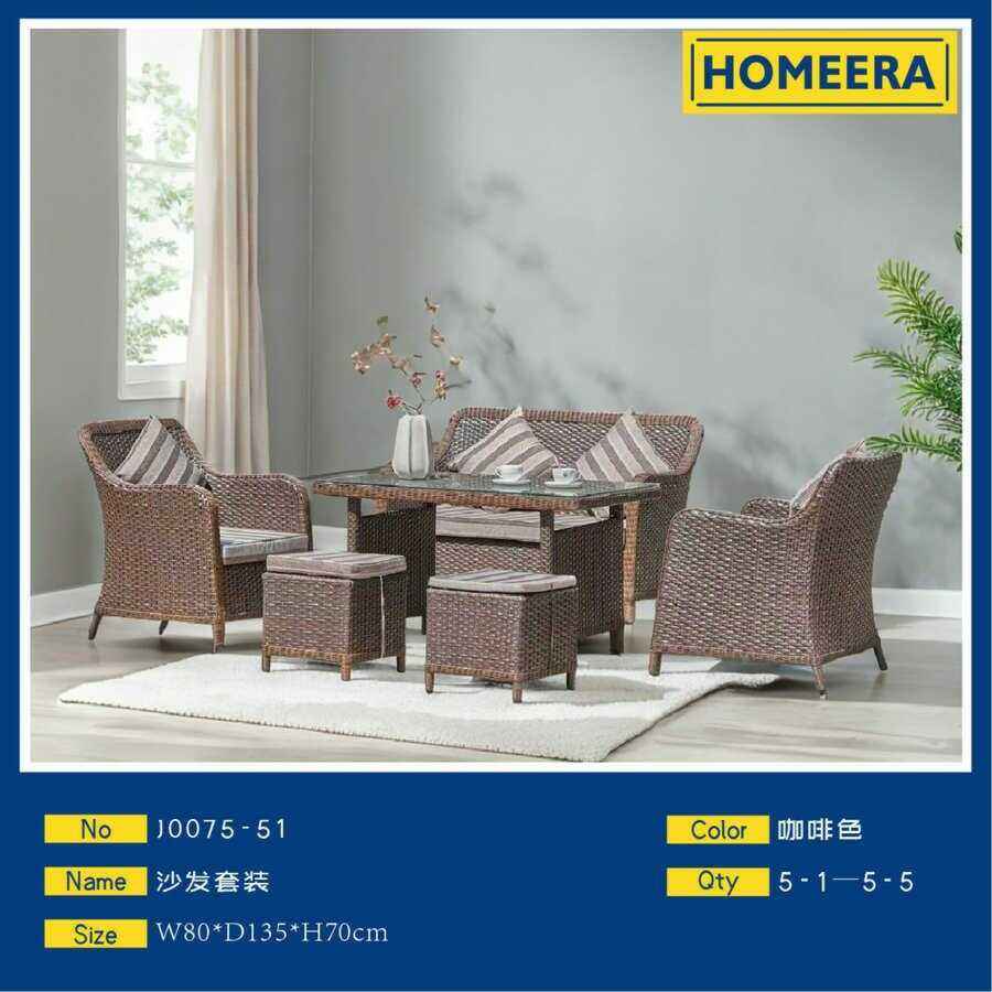 ชุดโซฟาหวายแบบสองที่นั่งพร้อมเก้าอี้สตูล สีน้ำตาลกาแฟ เฟอร์นิเจอร์ห้องนั่งเล่นกลางแจ้ง ดีไซน์ทันสมัย