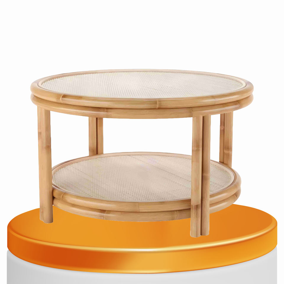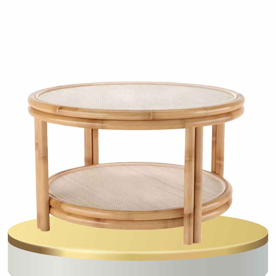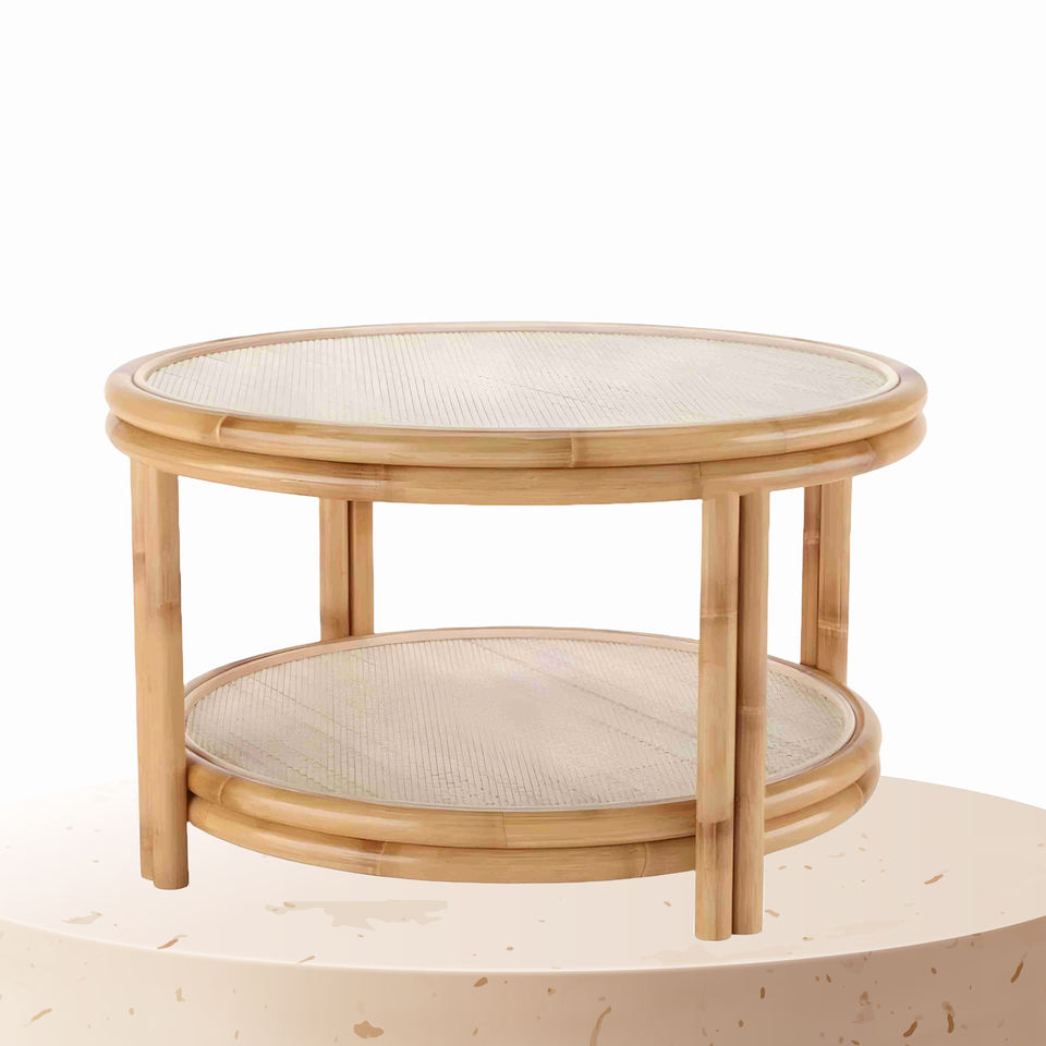 โต๊ะหวายพร้อมฐานงานฝีมือที่แข็งแรงและพื้นผิวธรรมชาติเหมาะสำหรับการตกแต่งภายในที่อบอุ่นหรือผ่อนคลายพื้นที่ทางสังคม