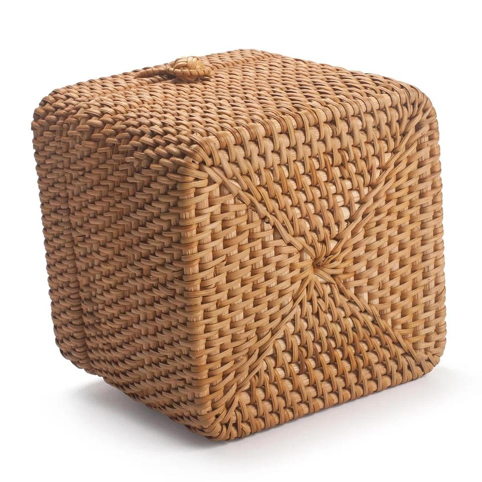 กล่องทิชชู่หวายขนาดสี่เหลี่ยมจัตุรัส: W5 7 x H5นิ้ว
