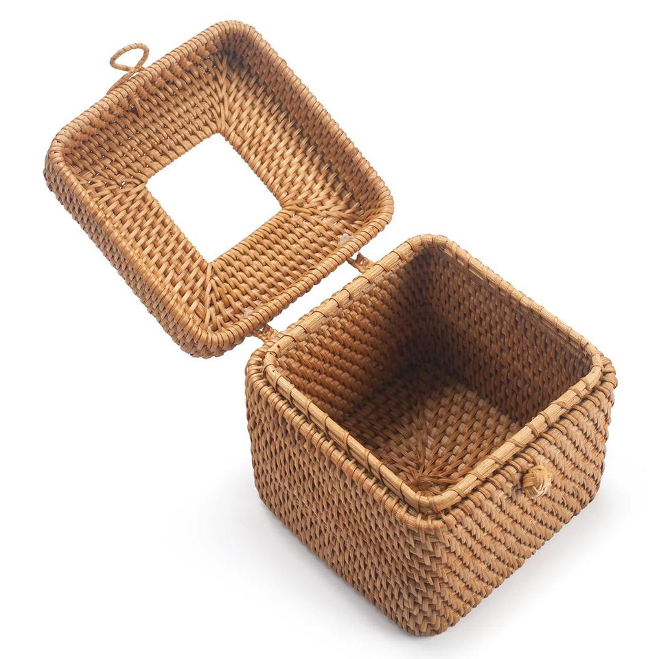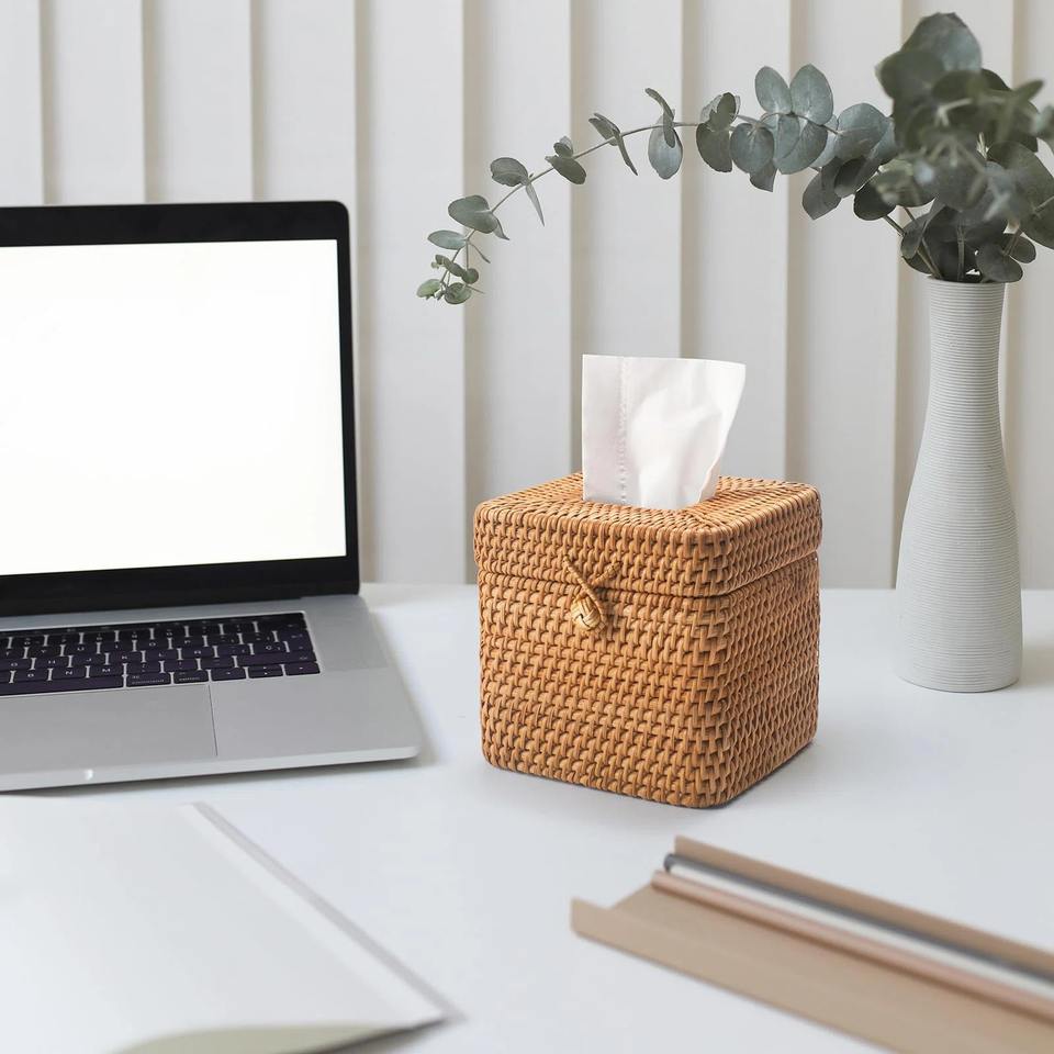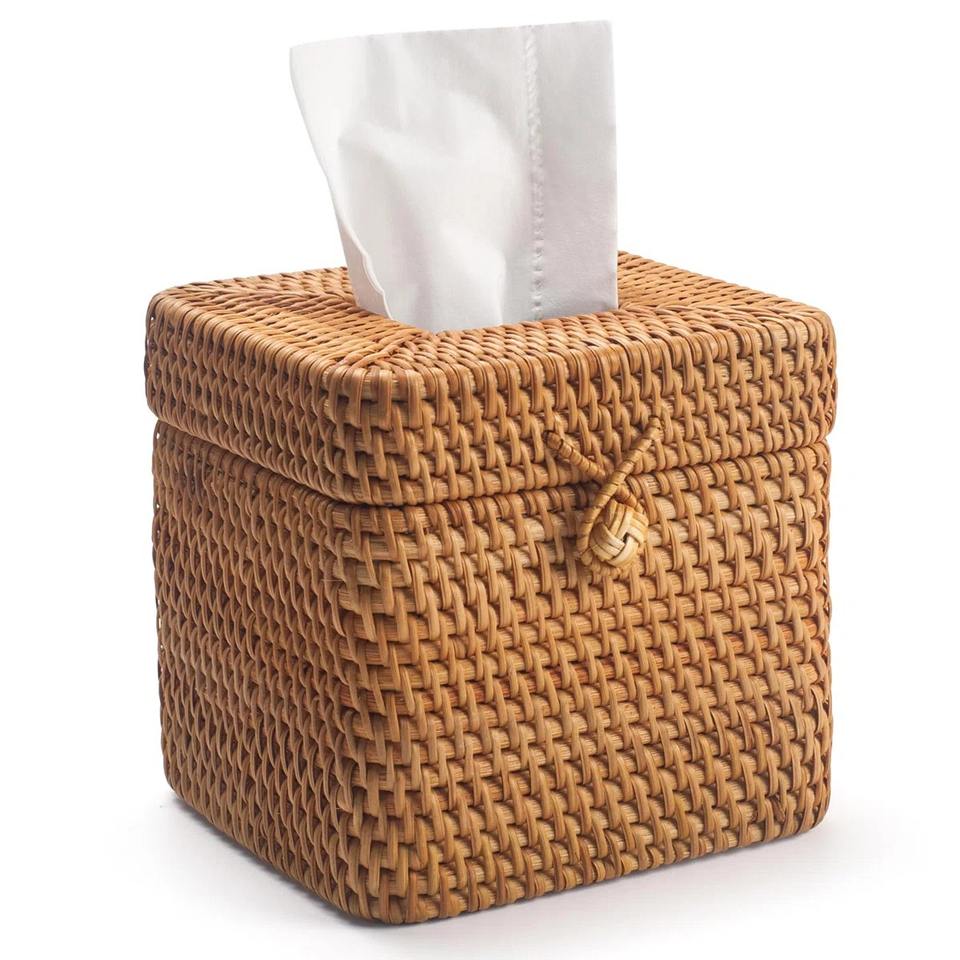 กล่องทิชชู่หวายคลุมกล่องเก็บของทำมือทรงสี่เหลี่ยมเป็นมิตรกับสิ่งแวดล้อมของตกแต่งบ้านและบ้านจากเวียดนาม