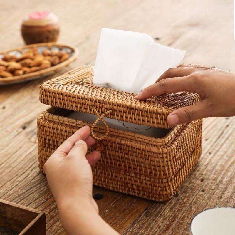 กล่องกระดาษทิชชู่หวายผักตบชวาไม้ไผ่ใส่ผ้าเช็ดปากหัตถกรรมหวายดอกไม้เวียดนามสำหรับบ้านห้องครัวโรงแรมเฟอร์นิเจอร์ตะกร้า
