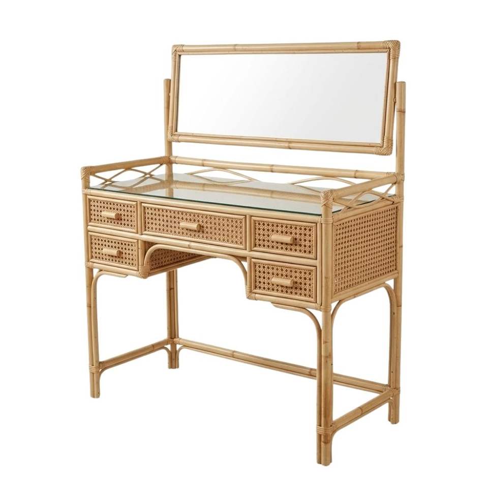 ชุดโต๊ะเครื่องแป้งหวายพร้อมกระจกและเก้าอี้สำหรับแต่งหน้า