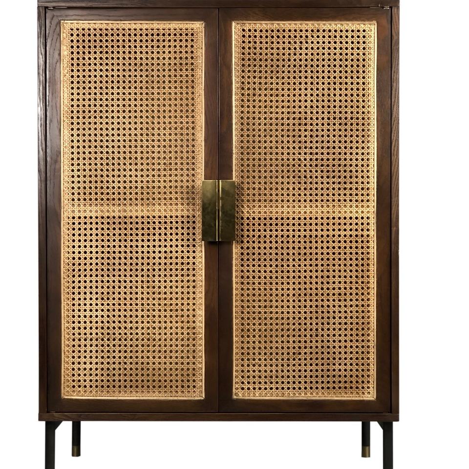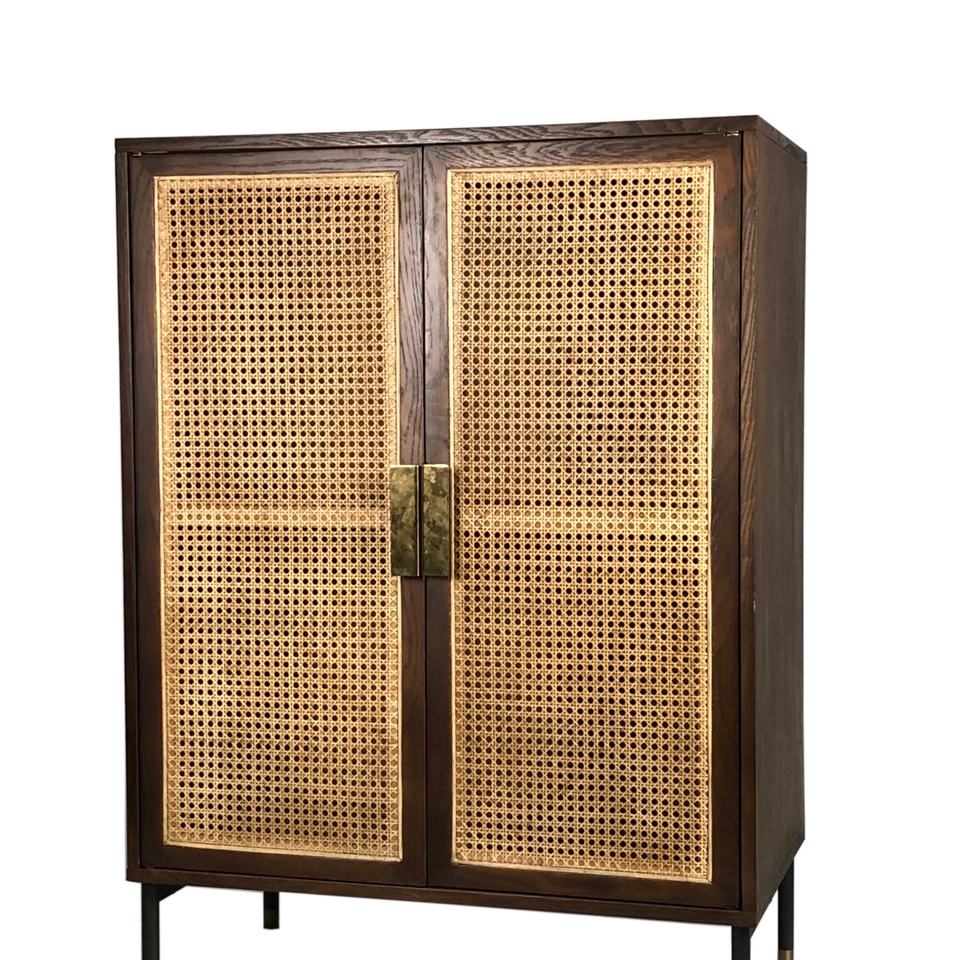 Rattan Webbing Retro Cabinets Furniture Living Room Wooden Flat Packed kd Kabinett Storage Cabinet