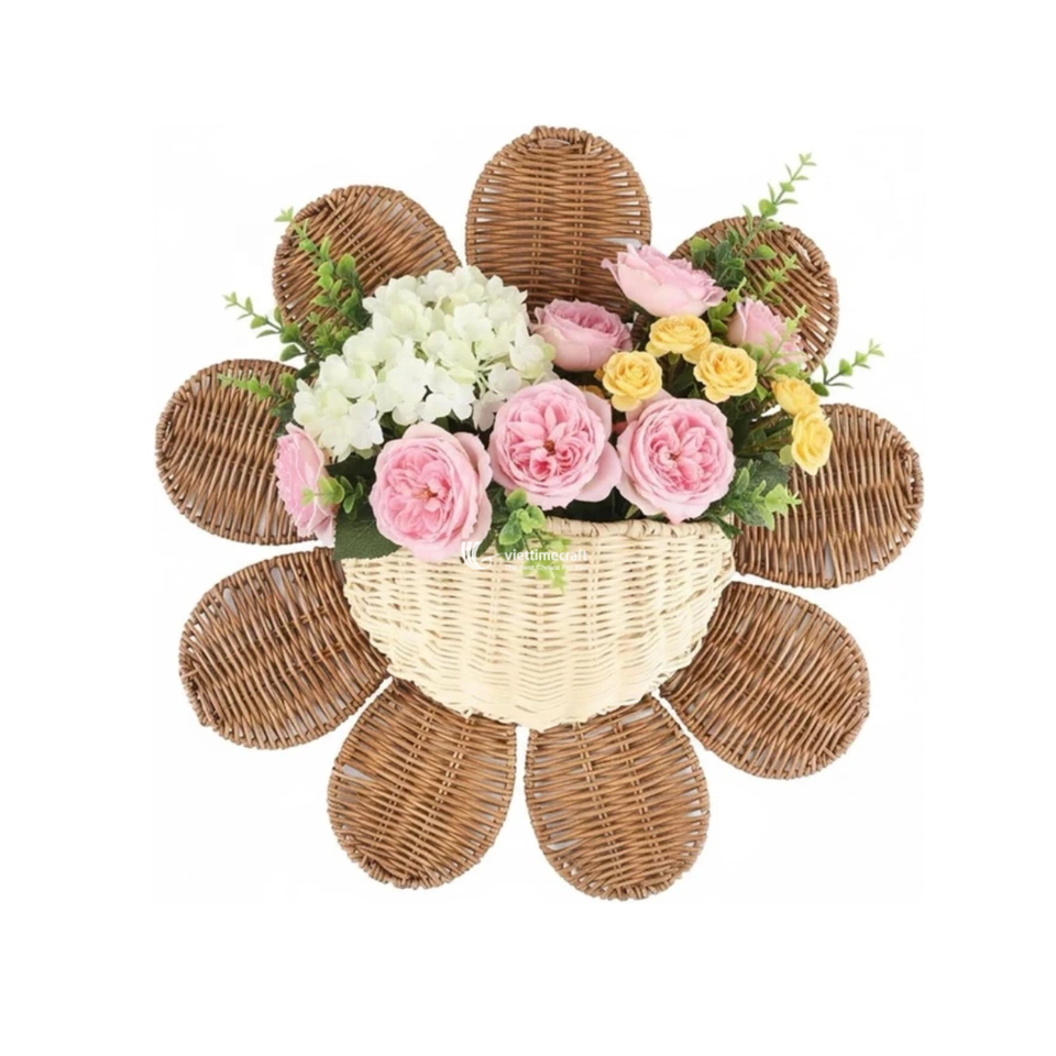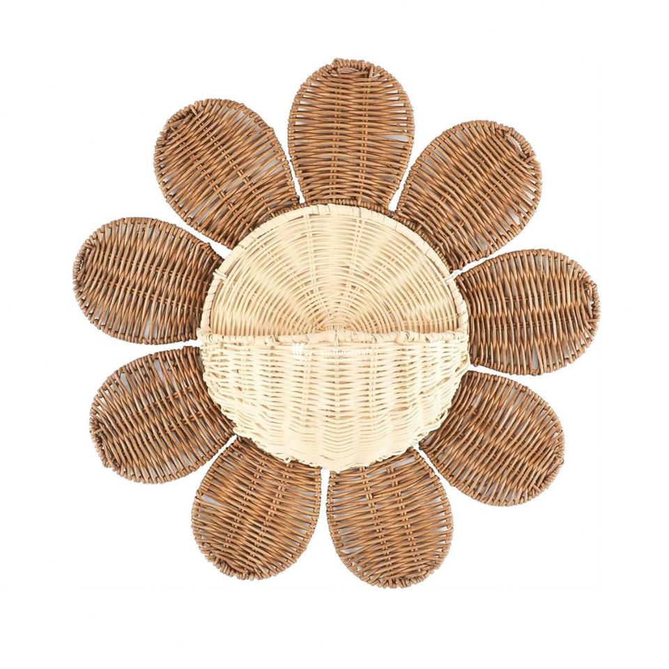ตะกร้าหวาย/หวายเทียมรูปดอกเดซี่สำหรับแขวนผนัง ตกแต่งรูปทรงดอกไม้ ใช้จัดเก็บของตกแต่งห้องเด็กและจัดแสดงดอกไม้