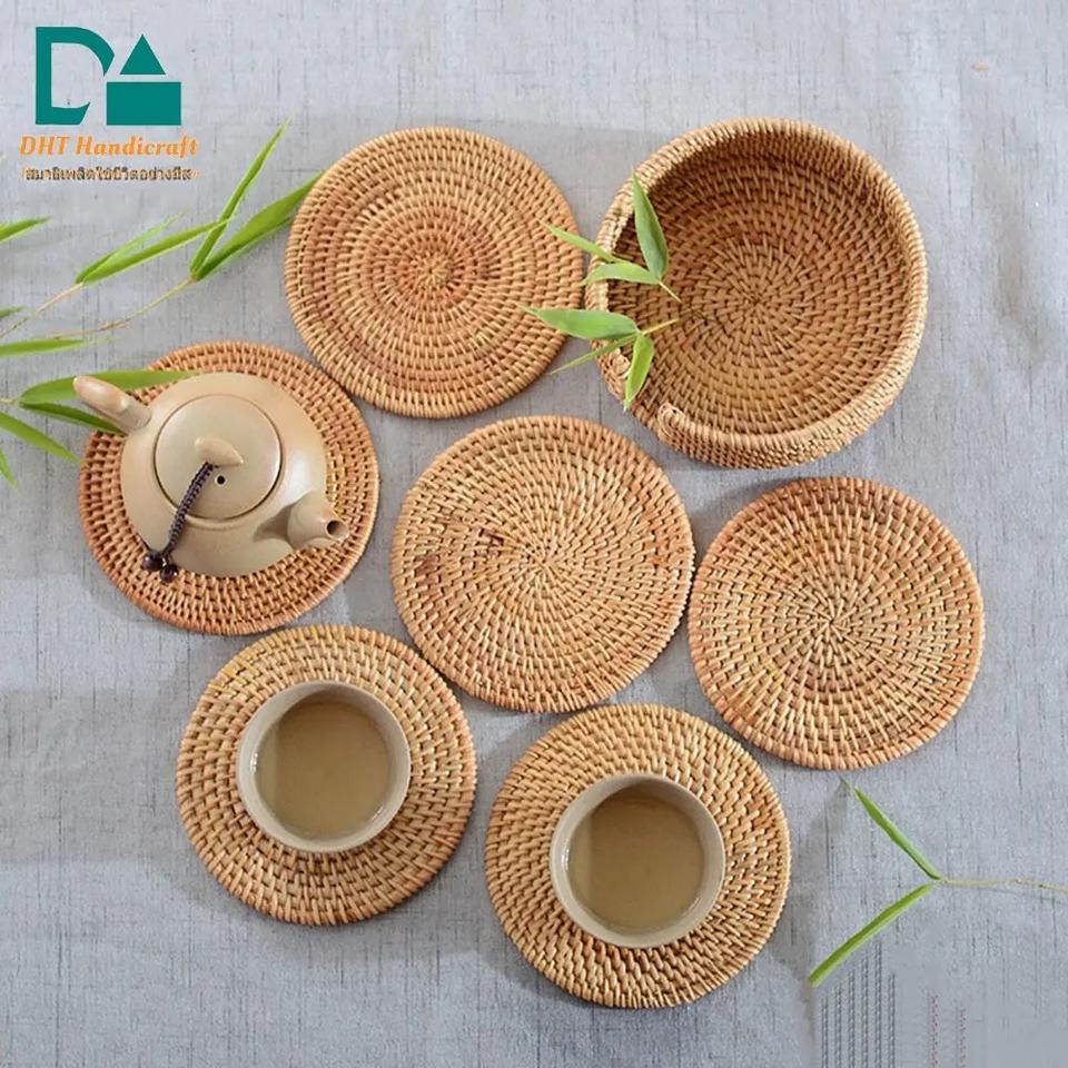 ที่รองจานหวายแบบดั้งเดิมทันสมัยของเวียดนามดีไซน์ใหม่สำหรับห้องนั่งเล่นรับประทานอาหารในบ้านเฟอร์นิเจอร์ในร่ม