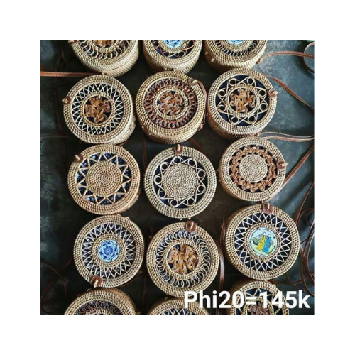 หวายทอบาหลีรอบกระเป๋าหวายแฮนด์เมดทอถุงฟางกระเป๋าหวายสี่เหลี่ยม