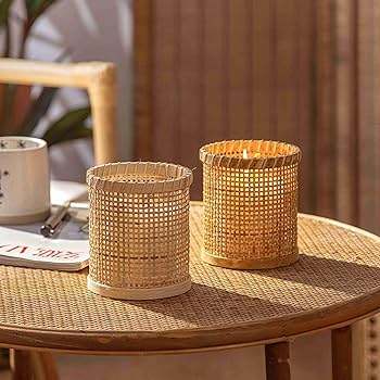เชิงเทียนหวายสานสำหรับตกแต่งเชิงเทียนหวายสไตล์วินเทจจากเวียดนาม