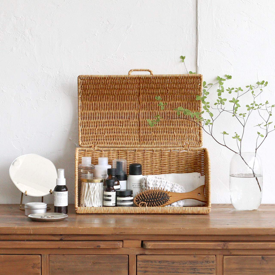 ชื่อ:กล่องหวายสำหรับแต่งหน้า ขนาด: L15.7 x W6.3 x H7 นิ้ว