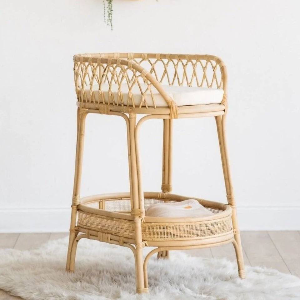 โต๊ะเปลี่ยนผ้าอ้อมหวายพร้อมตะกร้าเก็บของ โต๊ะเปลี่ยนผ้าอ้อมเด็กขายส่ง เฟอร์นิเจอร์เด็กอ่อน