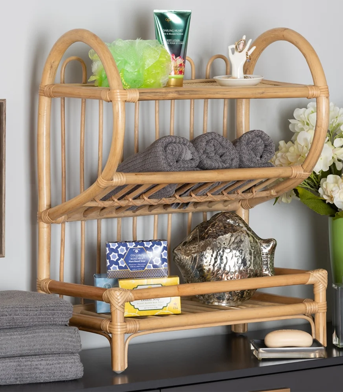 ชั้นวางของหวายชั้นวางบนพื้นผลิตจากวัสดุที่เป็นมิตรกับสิ่งแวดล้อมใช้สำหรับเก็บของตกแต่งบ้านขายส่ง
