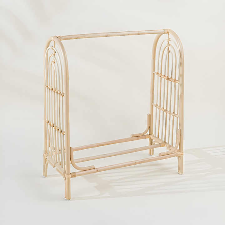 ที่แขวนหวายแบบตั้งสำหรับเสื้อผ้าเด็กที่แขวนเสื้อผ้าเด็กที่แขวนเสื้อผ้าเป็นมิตรกับสิ่งแวดล้อมชั้นวางของแบบยืนอุปกรณ์ภายในบ้าน