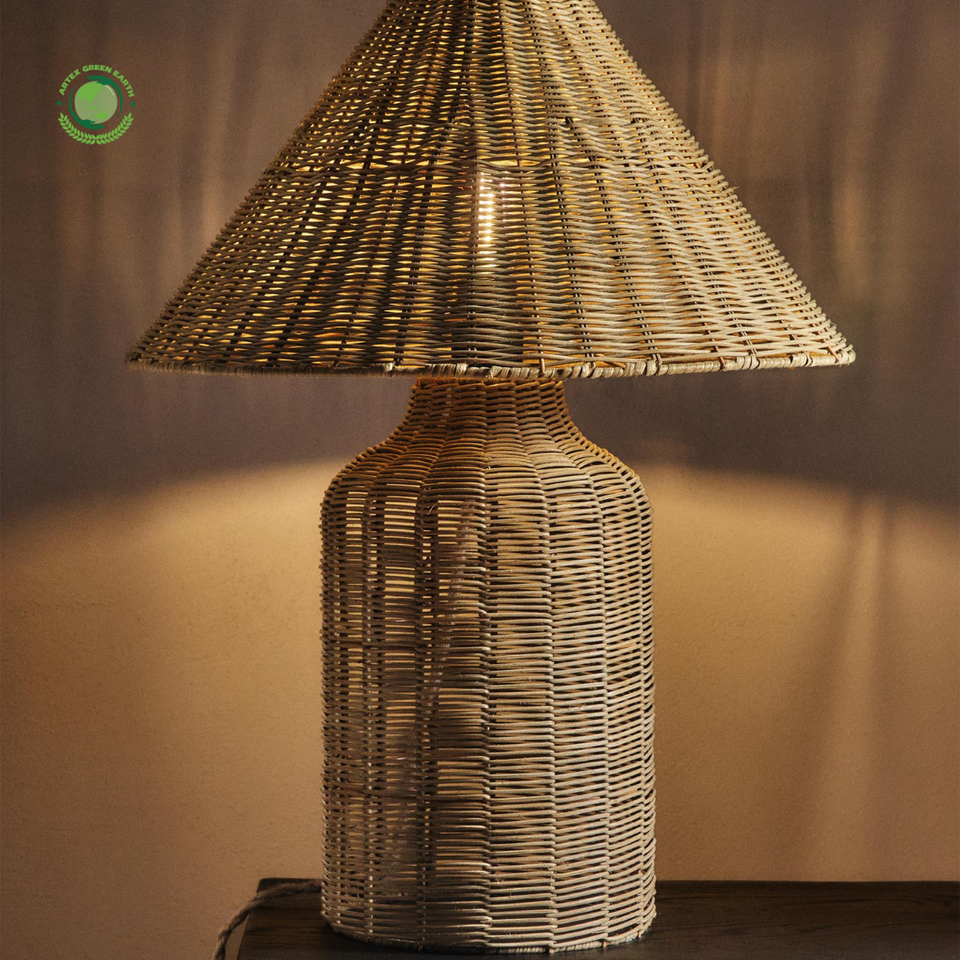 โคมไฟตั้งโต๊ะหวายพร้อมโป๊ะทรงกรวย